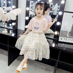欧美风刺绣女童短袖套装夏季新品卡通套头两件套针织棉...