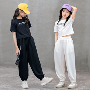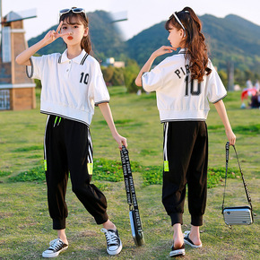 童装女童休闲套装夏季韩版中大童亲子装露脐运动短袖长...