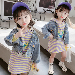 女童卡通牛仔卫衣裙两件套女宝宝秋装新款儿童韩版时尚...