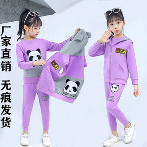 女童秋装套装2021新款女宝宝春秋时髦宽松牛仔服两...