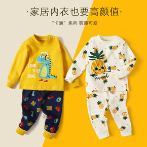 春秋儿童内衣套装纯棉1-3-5-8岁中高领高腰长袖...