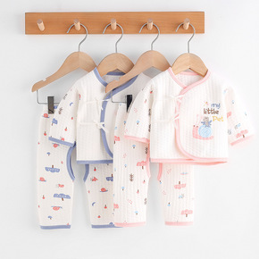 新生婴儿衣服秋冬纯棉无骨打底内衣初生宝宝夹棉保暖和...