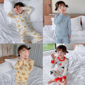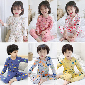 儿童莱卡内衣套装纯棉睡衣宝宝秋装睡衣 男女童莱卡秋...