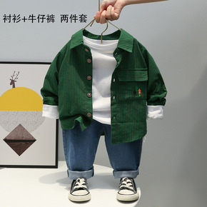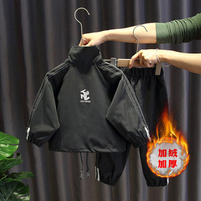 儿童套装2022春冬新款韩版帅气纯色两件套男宝宝休...