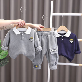 直销新款秋季POLO衫童套装亚马逊秋冬韩版儿童休闲...