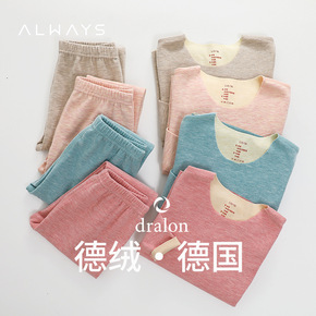 9色 儿童羊毛拉架棉磨毛家居服内衣男女童宝宝圆领睡...
