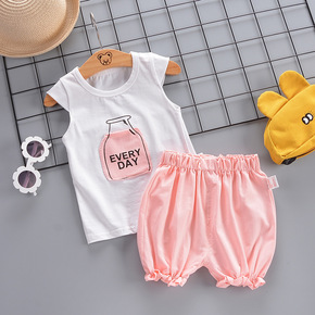 女童夏季新款韩版全棉心机领抽绳修身短款上衣抽绳半身...