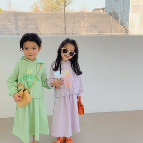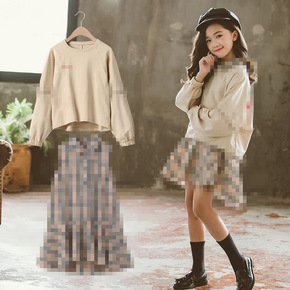 中大童春季新款百褶拼接套装女童连帽拉链外套简约休闲...