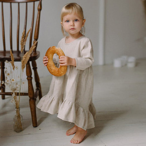 棉麻连衣裙女童装2022年春夏季新款圆领长袖公主裙...