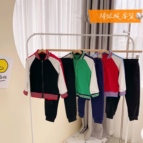 童装2022春秋季童长袖立领拉链童套装男童女童新款...