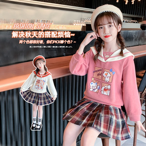 女童长袖套装2022秋季新款jk制服连帽卫衣日系学...