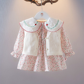 2022外贸童装春婴幼儿两件套印花公主裙外套女宝衣...