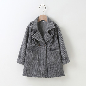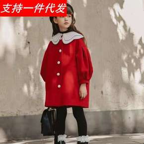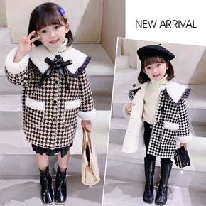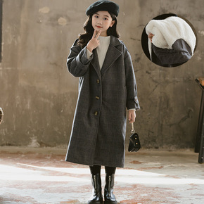 女童毛呢外套中长款2019秋冬款立领加厚呢子大衣时...