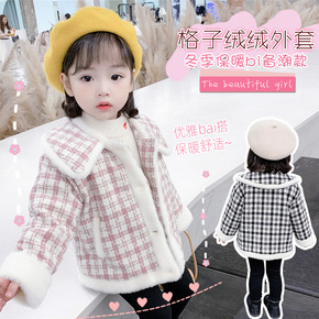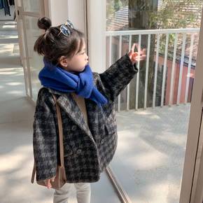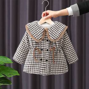 女童毛呢千鸟格洋气外套2022春秋新款女宝宝复古呢...