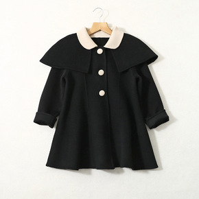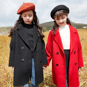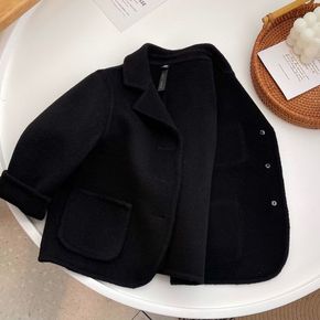 经典黑色西装双面羊绒秋冬男童女童洋气羊毛呢子大衣大...