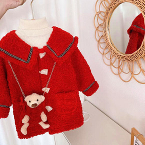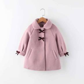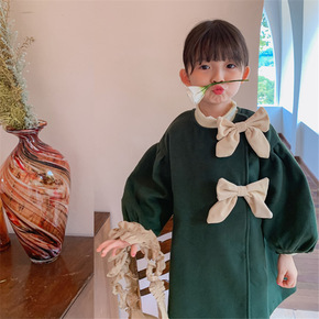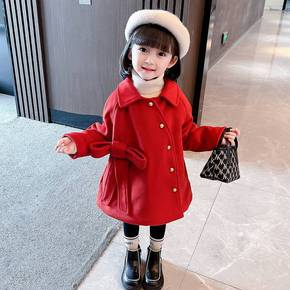 女童加厚毛呢外套2022新款新款韩版儿童中长款蝴蝶...