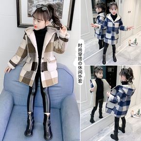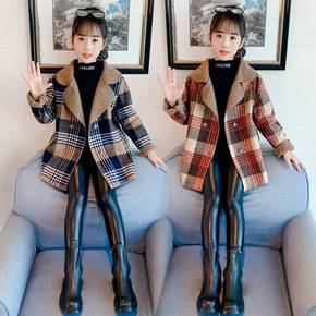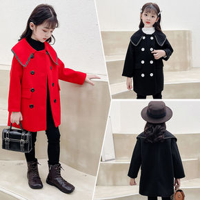 女童毛呢外套2022秋冬装新款洋气大童儿童装中长款...