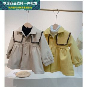 女童风衣女童呢子大衣2021新款秋冬洋气中长款中大...