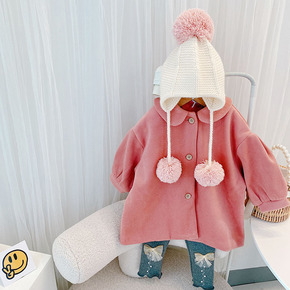 韩国女童2022冬装高感呢大衣女宝宝中长款加厚外套...