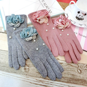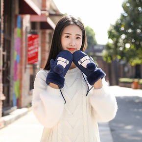 冬季学生翻盖时尚蝴蝶结手套 女士韩版百搭保暖手套...