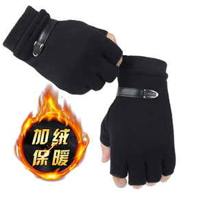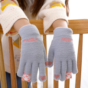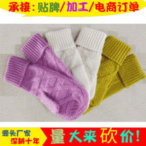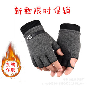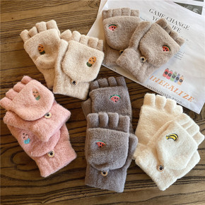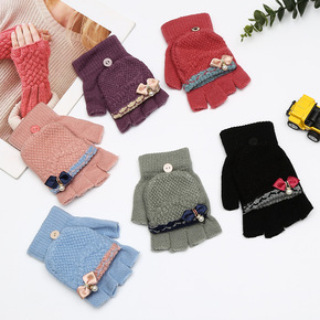 批发 秋冬季韩版保暖可爱翻盖两用露指毛线手套女生半...