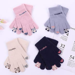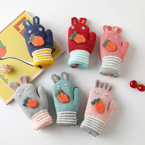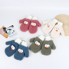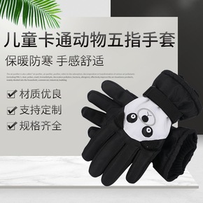 批发冬季加厚加绒儿童手套 男女保暖五指卡通可爱动物...