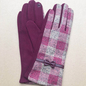 厂家供应毛呢斜格子时尚保暖加绒手套秋冬季新款女式骑...