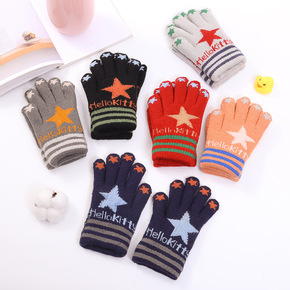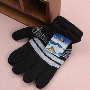 冬季儿童毛线手套男童保暖五指加厚加绒小孩学生幼儿园...