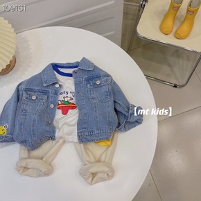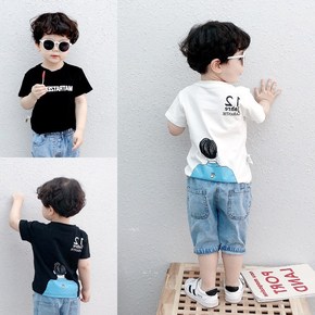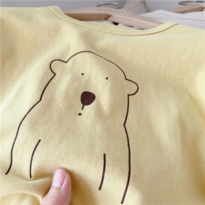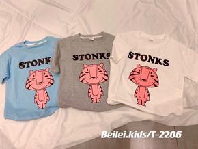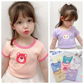 2022春新款宽松短袖t恤男女童短款三色上衣卡通印...