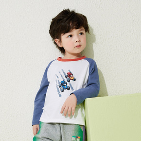 春季新品童装儿童长袖T恤卡通恐龙男童打底衫秋款长T...