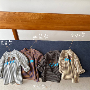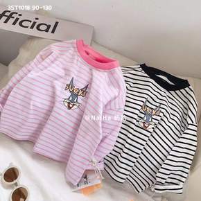 奶哈2022春季新款男女童韩版洋气卡通长袖条纹T恤...