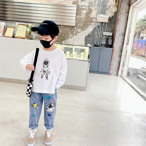 N家22新字母男童长袖t恤薄款中大童男孩童装棉儿童...