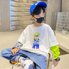 童装男童春装新品假两件卫衣中大童2022春秋圆领打...