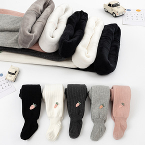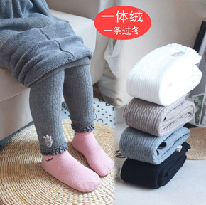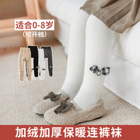 女童连袜裤秋冬加绒加厚宝宝连脚婴儿连体袜子白儿童打...