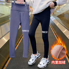 女童打底裤2022秋冬款加绒加厚童装刺绣月牙字母外...