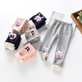小巴兔女童打底裤秋冬款加厚加绒裤子外穿加绒女宝宝黑...