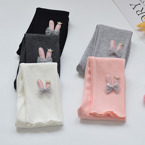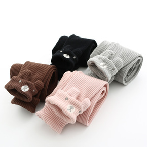 童装秋季童裤 坑条棉质女童韩版小熊绣花女童打底裤 ...