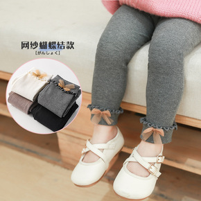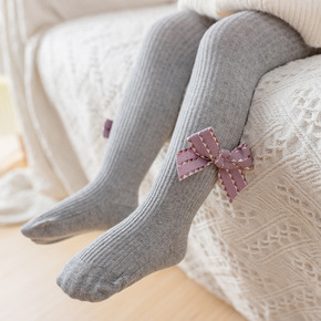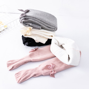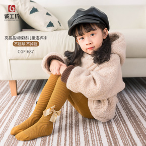 儿童连裤袜秋冬新款配饰蝴蝶结女童打底裤精梳棉宝宝裤...