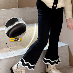 女童加绒裤韩版加绒加厚儿童裤子可开档保暖童卡通女童...