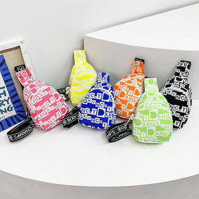 儿童胸包韩版帅气男童斜挎包撞色字母女孩腰包宝宝配饰...