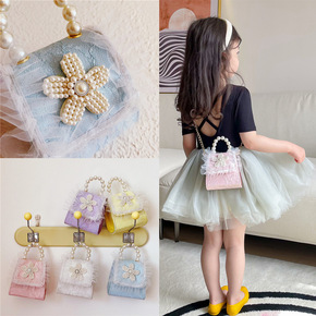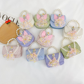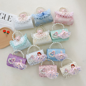 爱莎公主蕾丝零钱包2022新网红个性珍珠手提包女童...