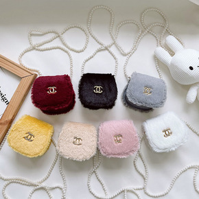 2021秋新款儿童包可爱毛绒珍珠链条单肩斜挎公主包...