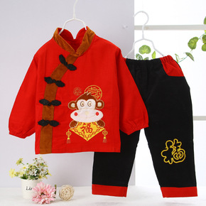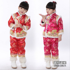 男女儿童汉服宝宝周岁新年衣服中国风罩衣裤冬季唐装大...