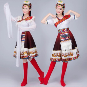 2020新款藏族舞蹈演出服儿童成人藏族水袖藏服蒙古...