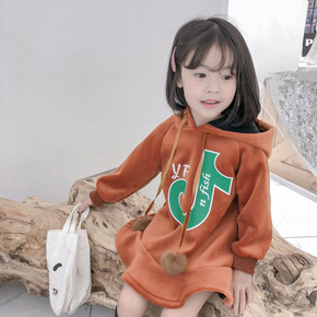 特价韩版新款女童冬卫衣裙宝宝加绒连帽外套儿童上衣潮...