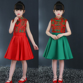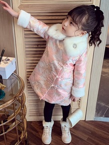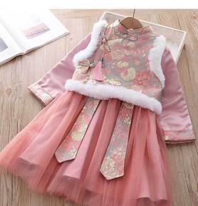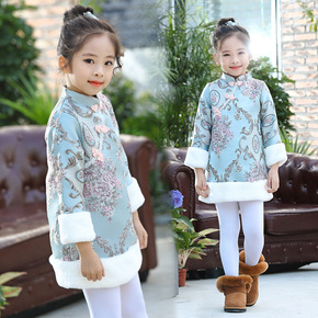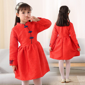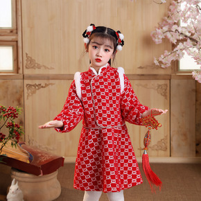拜年服女童连衣裙加绒加厚冬季唐装儿童旗袍新年装女宝...