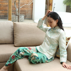 复古优雅气质短款旗袍小袄淡绿色珍珠刺绣花朵少女贵妇...