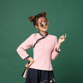 旗袍小袄复古短款上衣年轻款少女改良刺绣中国风棉袄夹...
