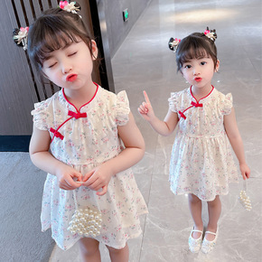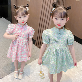 女童碎花盘扣2022新款洋气儿童夏季旗袍公主裙宝宝...