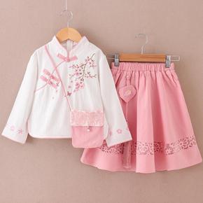 女童唐装裙2021春季款儿童汉服连衣裙风复古洋气小...